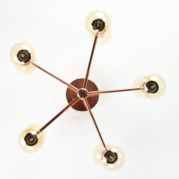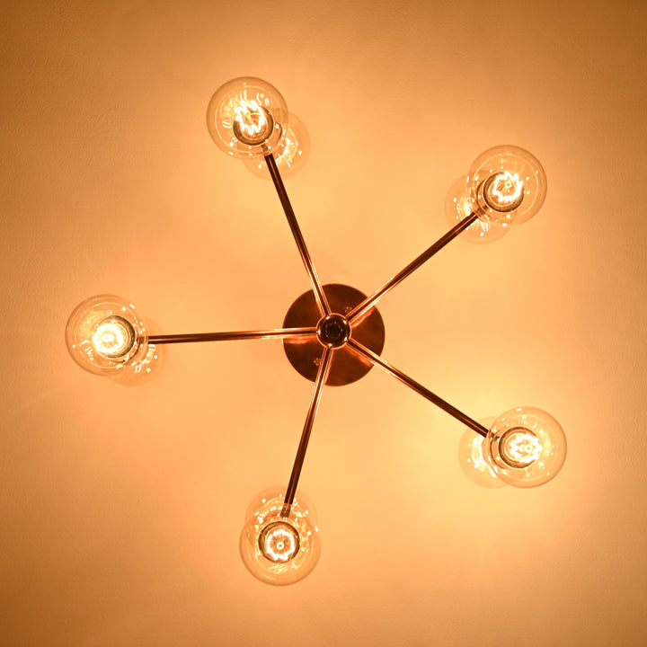 Elegant 6-Light Rose Gold Sputnik Chandelier – Glam Ceiling Fixture with Dual Arm Design - 32179