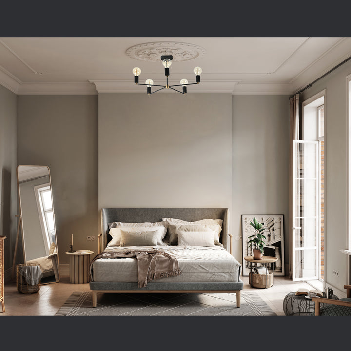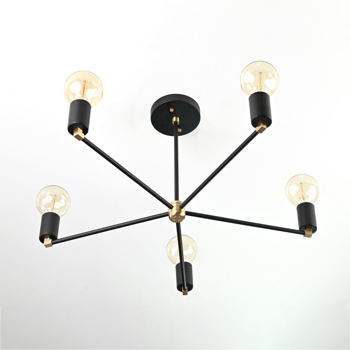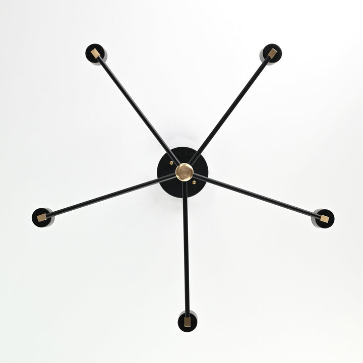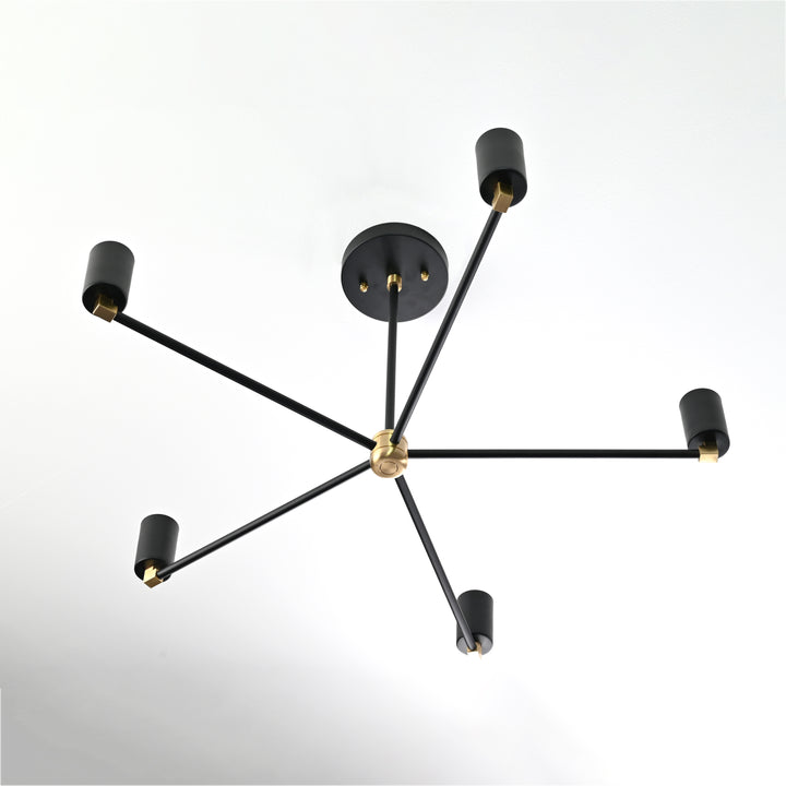Contemporary 6-Light Black & Brass Sputnik Chandelier – Mid-Century Inspired Minimalist Fixture - 32184