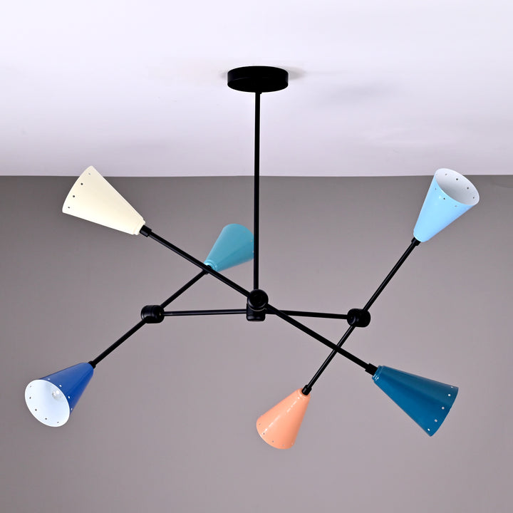 Modern 6-Light Chandelier – Mid-Century ColorfCeiling Light – Customizable Brass/Copper Finishes – - 32253