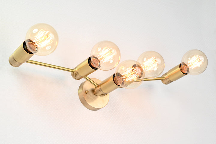 Mid-Century Modern Customizable Wall Sconce | 5-Light Brass Fixture with Angular Arm Design - 32547