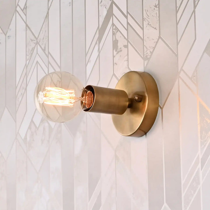 With a design rooted in simplicity, this compact wall sconce offers a clean and elegant lighting solution for modern and minimalist interiors. Measuring just 4 inches in height, width, and depth, its cube-like profile gives off a distinctly contemporary feel. Crafted from brass with a brushed finish, the fixture exudes understated luxury while remaining unintrusive. The cylindrical socket extends directly from a flat round backplate, offering direct illumination with an exposed filament bulb that adds a touch of vintage charm. Ideal for accent lighting, this sconce is perfect for tight spaces like corridors, reading nooks, or as a sophisticated bedside lighting option.