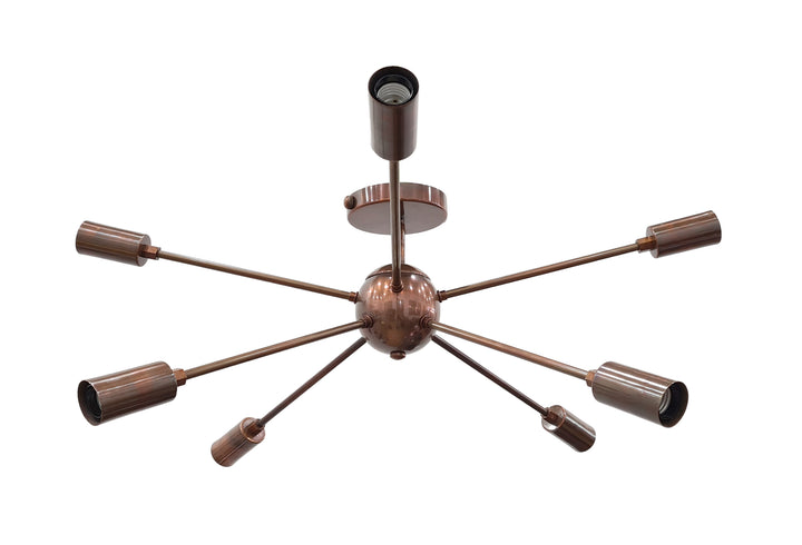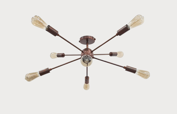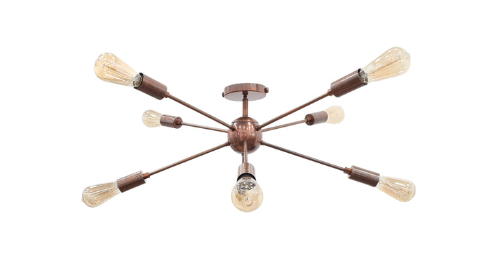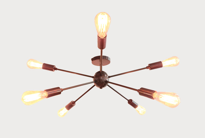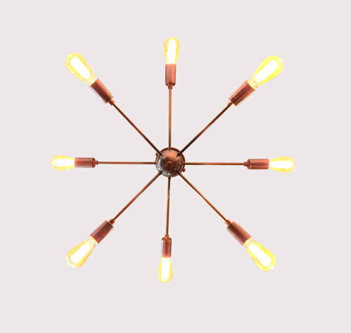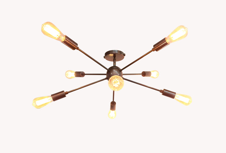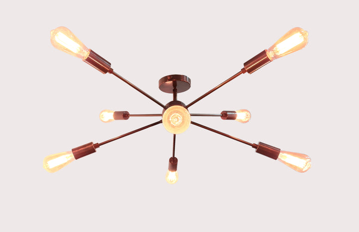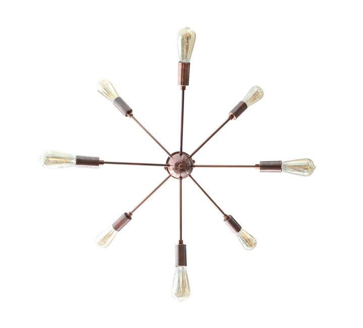 Retro 8-Light Bronze Sputnik Chandelier – Industrial Mid-Century Modern Pendant Ceiling Light with Exposed Filament Bulbs - 32147