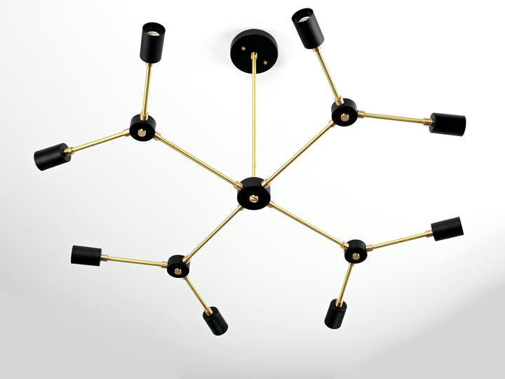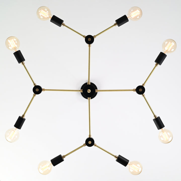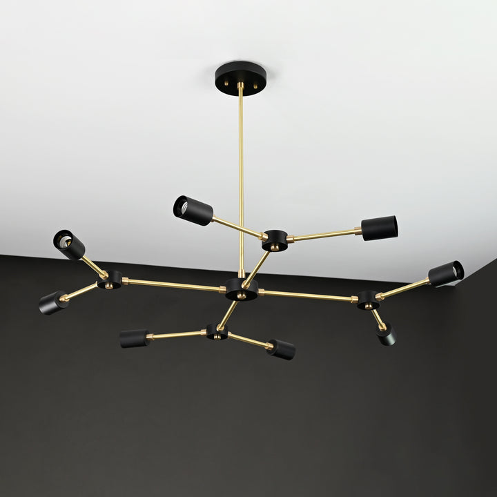 Modern 12-Light Black & Brass Geometric Chandelier – Art-Deco Inspired Ceiling Fixture - 32168