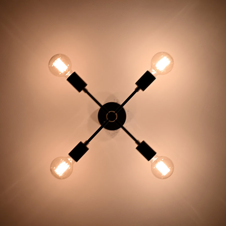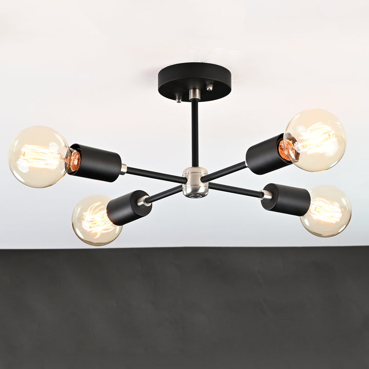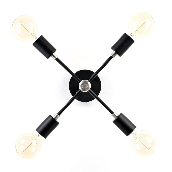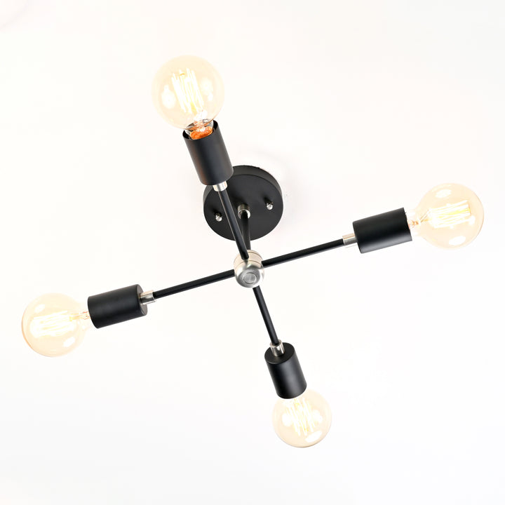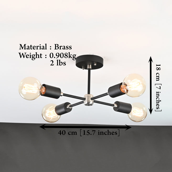 Elevate your space with this striking modern ceiling light, designed to blend contemporary elegance with functional charm. Featuring four sleek arms, this eye-catching fixture adds a bold yet refined statement to any room. Expertly crafted from premium brass with a sophisticated black and brushed chrome finish, it exudes durability and style in equal measure. Perfectly sized for cozy interiors, it spans 40 cm (15.7 inches) wide and drops just 18 cm (7 inches) from the ceiling—ideal for compact spaces that deserve a touch of brilliance. This small light combines minimalist beauty with practical illumination, making it a standout addition to modern living.