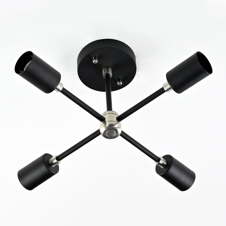 Modern 4-Light Matte Black Sputnik Chandelier – Compact Ceiling Fixture with Cylindrical Shades - 32175