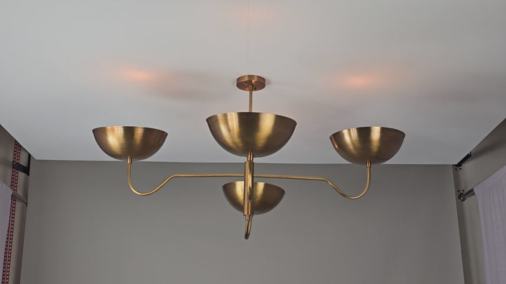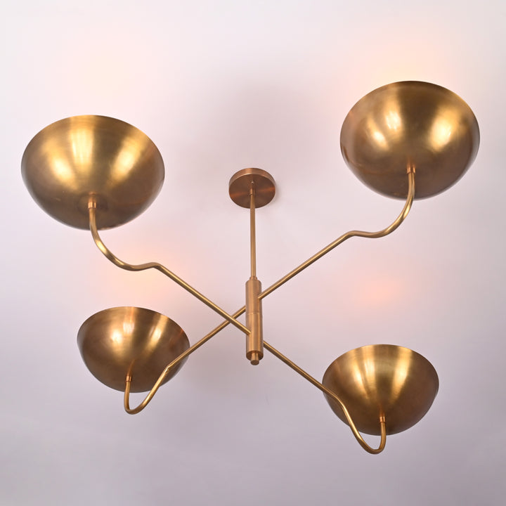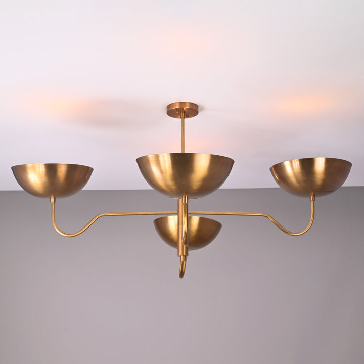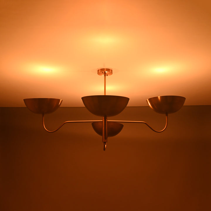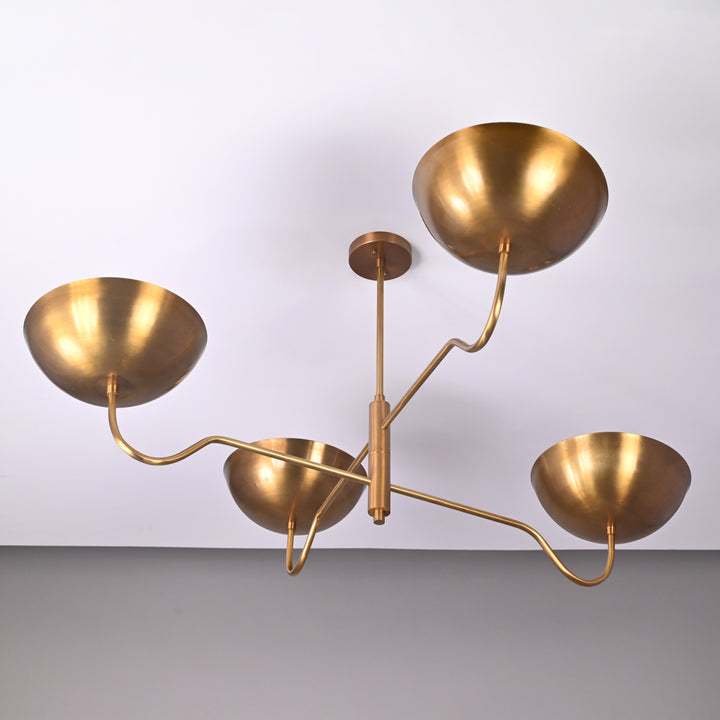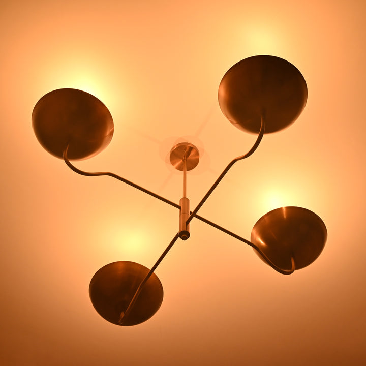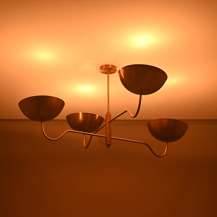 Modern Brass Chandelier | 4 Light Mid Century Ceiling Light | Customizable Brass or Copper Finish Semi Flush Mount Lighting - 32366