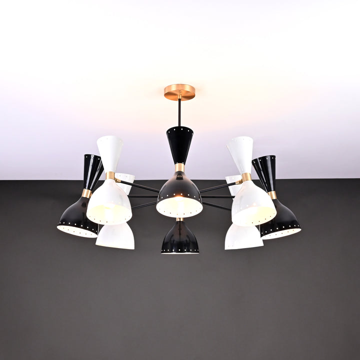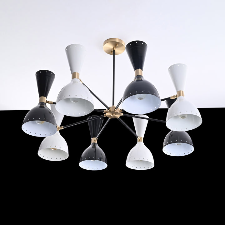 Modern 10-Light Black & White Chandelier – Dual Cone Sputnik Fixture with Brass Accents - 32221