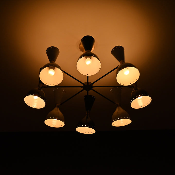 * 8-arm Diabolo-style chandelier with a sculptural, symmetrical design