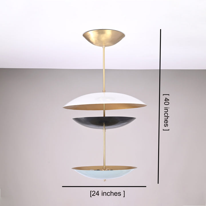 Three-Tier Dome Pendant Chandelier | 24" Wide | Customizable Modern Brass Ceiling Light | Handmade & - 32393