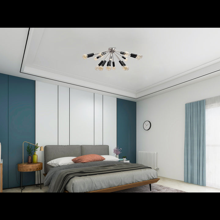 Contemporary 9-Light Black Metal Sputnik Chandelier – Industrial Ceiling Fixture with Adjustable Arms - 32157