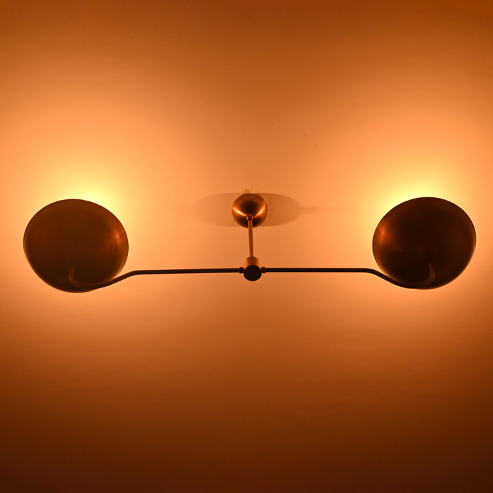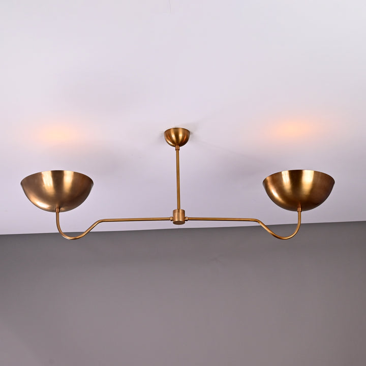 Two-Light Uplight Brass Ceiling Lamp – Custom Mid-Century Modern Uplighting Chandelier | Handmade, - 32343