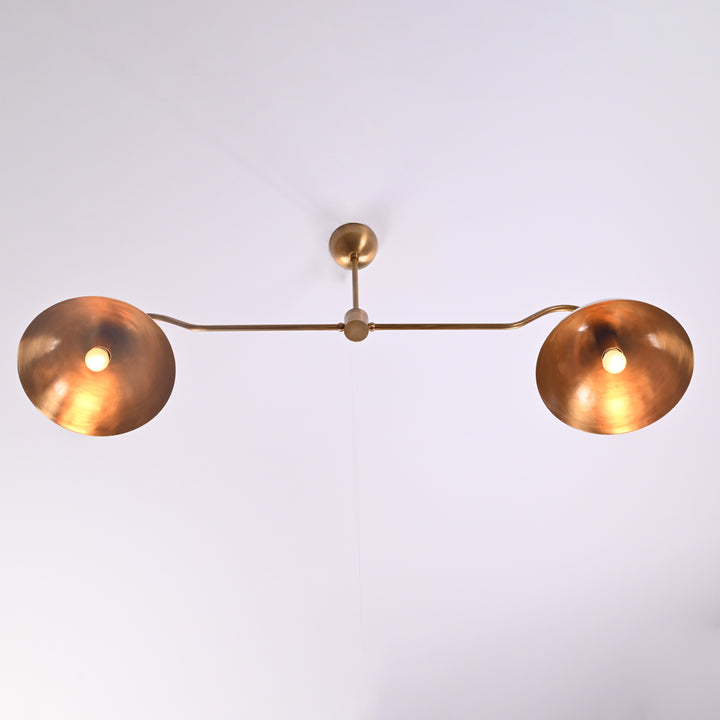 Two-Shade Brass Ceiling Chandelier – Custom Handmade Mid-Century Pendant Light | - 32342