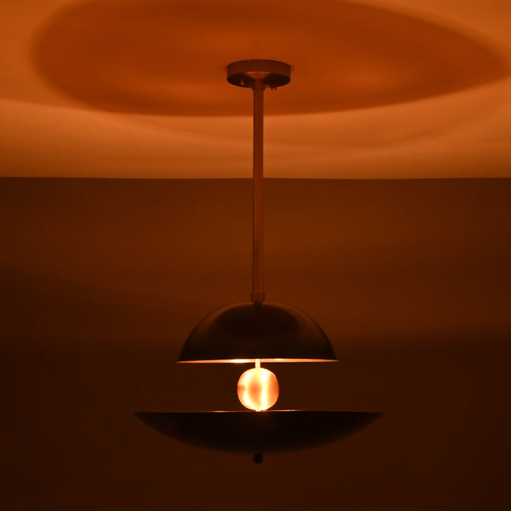 * Sculptural and symmetrical pendant design with dual dome structure.