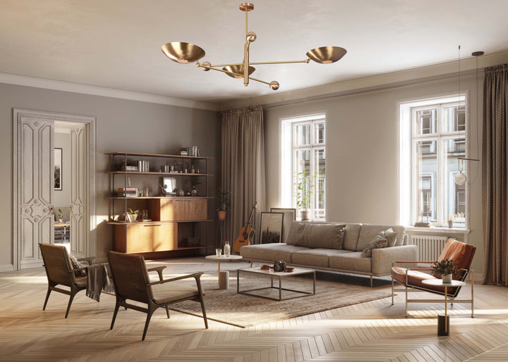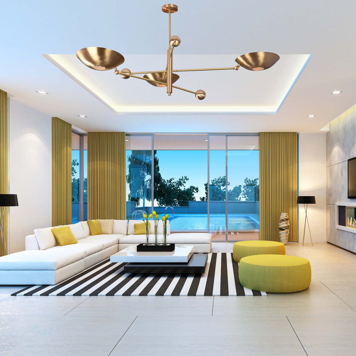 Modern Brass Chandelier | Adjustable Mid-Century Pendant Light | 3-Light Ceiling Fixture | Natural Brass or Custom Finishes | Handmade Lighting - 32326