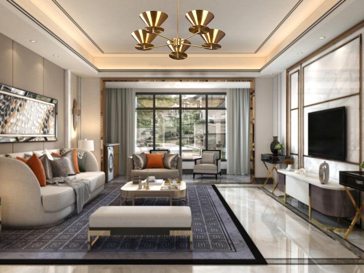 Modern 5-Light Brass Chandelier | Customizable Ceiling Light Fixture Mid-Century Modern Design - 32256