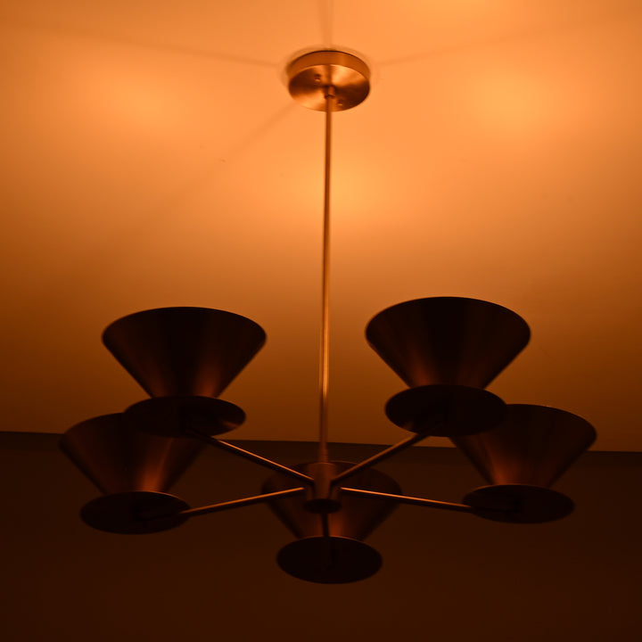 * Modern and geometric radial layout with five evenly spaced conical shades