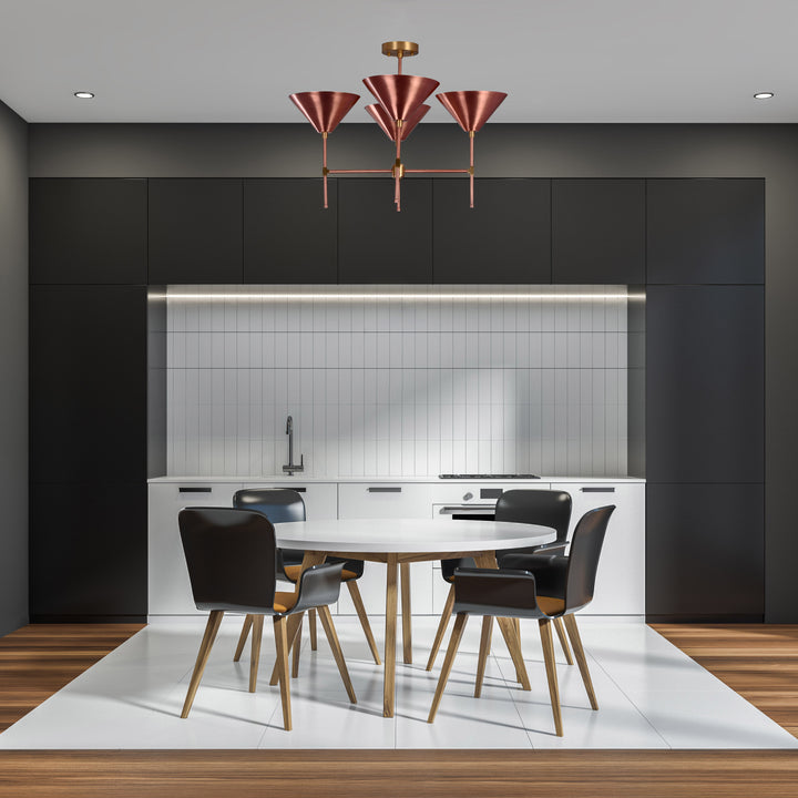 Modern Brass Chandelier – Customizable Four-Light Cone Pendant Light Fixture - 32269