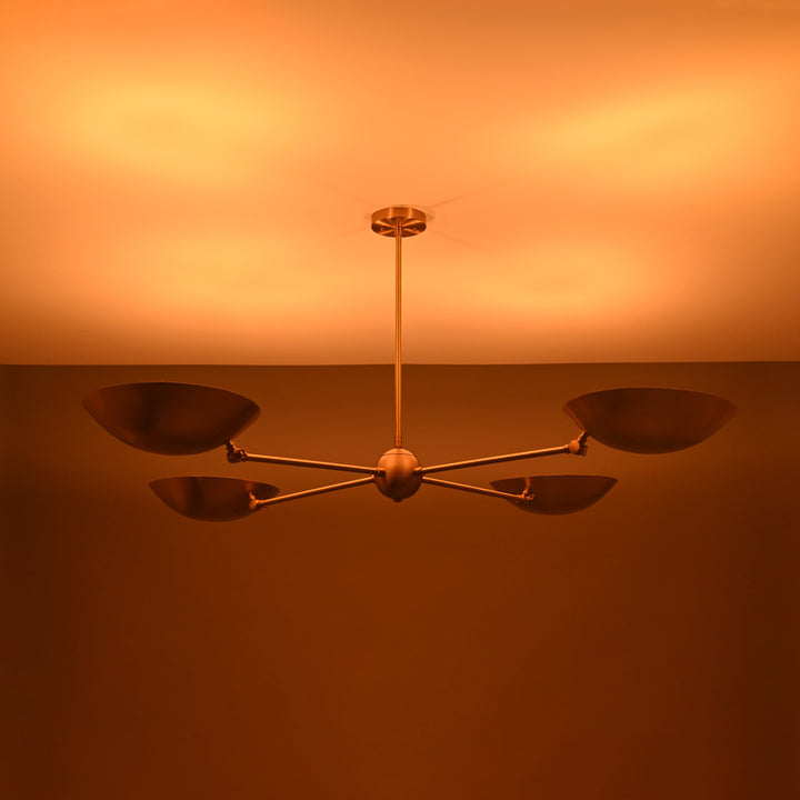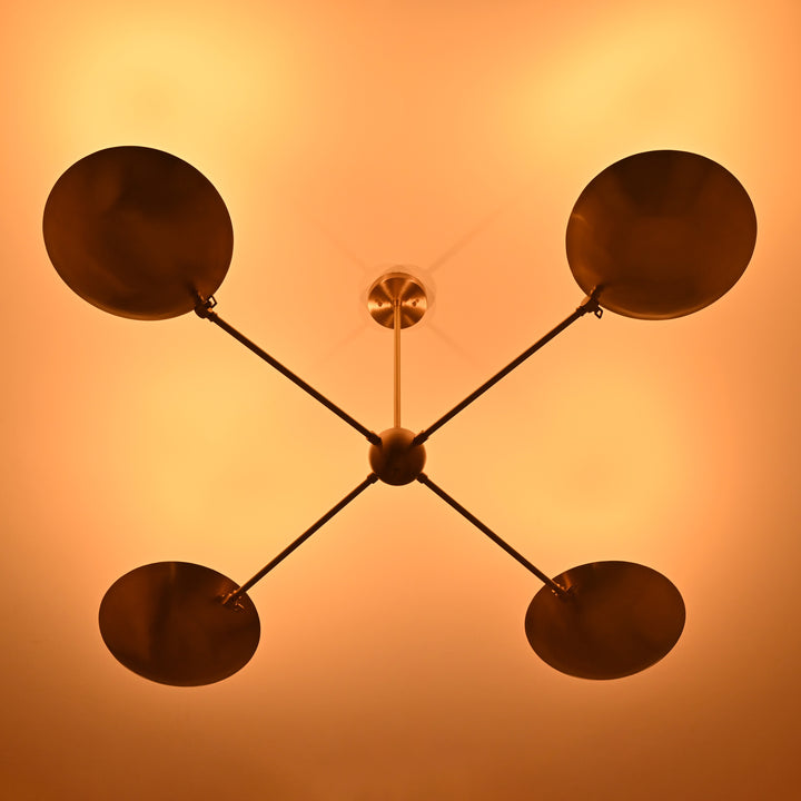 4-Light Uplight Brass Chandelier – Custom Mid-Century Modern Sculptural Ceiling Light | & Handmade - 32315