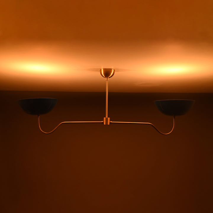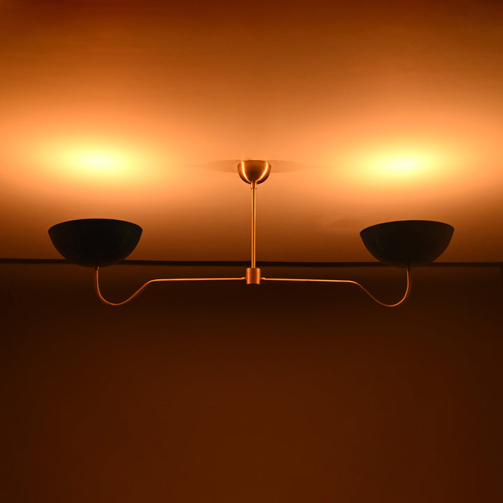Two-Light Uplight Brass Ceiling Lamp – Custom Mid-Century Modern Uplighting Chandelier | Handmade, - 32322