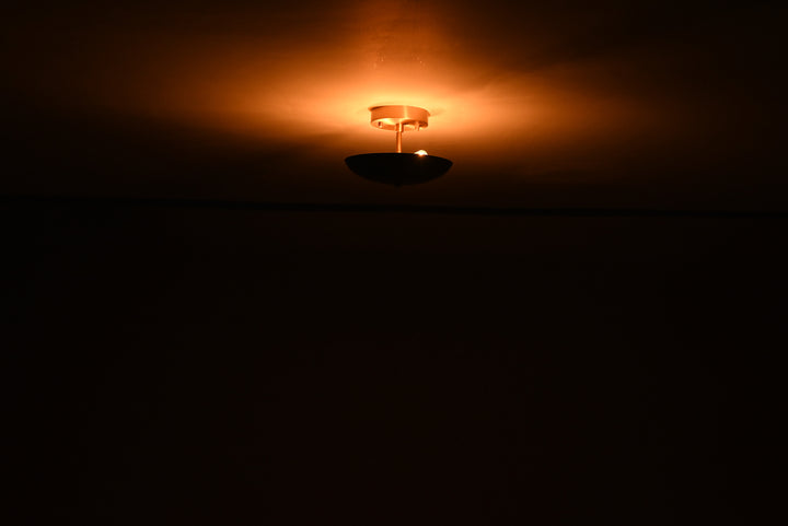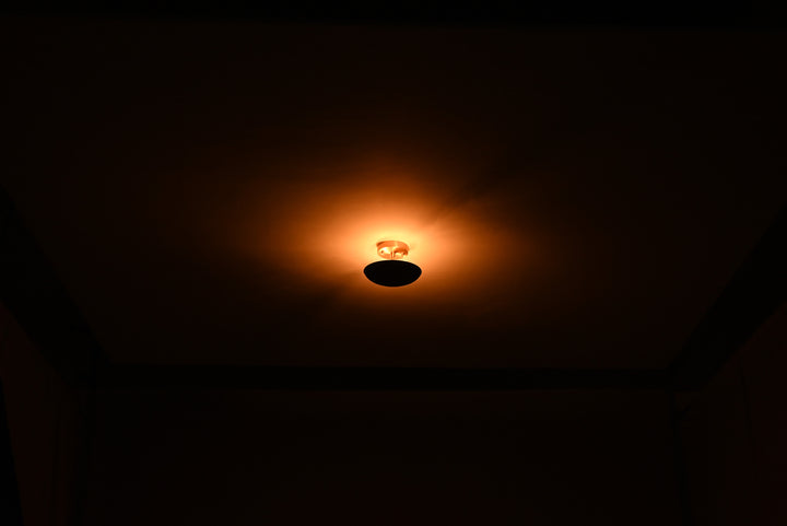 This compact ceiling fixture, measuring 8 inches in diameter and 6 inches in height, is designed for understated elegance in smaller spaces. Its trio of bulbs emits an upward illumination, creating a refined ambient glow. In dim settings, the lamp casts a soft, radiant halo across the ceiling, enriching the atmosphere with a warm, diffused light. Ideal for intimate corners, entryways, or hallways, this lamp delivers both function and aesthetic appeal in a small form factor.