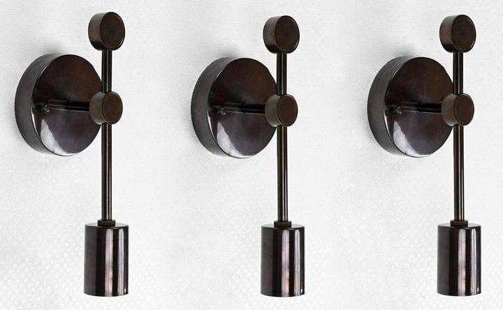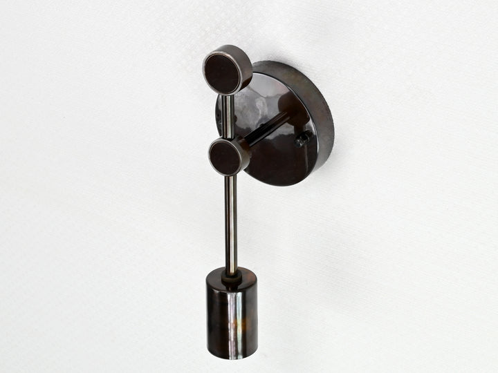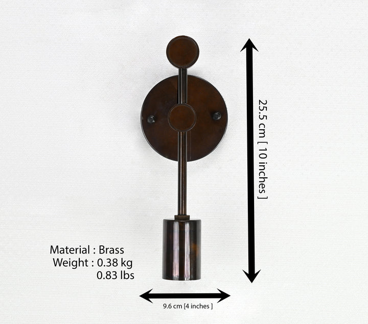 Minimalist in form yet sculpturally refined, this single-light vertical wall sconce is crafted from solid brass and finished in a deep, aged patina. Measuring 25.5 cm (10 inches) in height and 9.6 cm (4 inches) in width, the design features a cylindrical bulb holder suspended below a linear rod, punctuated by clean circular accents for added visual balance. The fixture’s architectural posture creates a strong vertical presence while remaining compact and lightweight at just 0.38 kg (0.83 lbs). Perfect for flanking mirrors, styling alongside art, or providing low-level lighting in narrow spaces, this sconce delivers ambient warmth with a distinctly modern-industrial character. Pair it with an Edison-style bulb to amplify its vintage appeal, or opt for a frosted globe for a softer contemporary look. Its simplicity makes it endlessly adaptable—yet its silhouette ensures it never fades into the background.