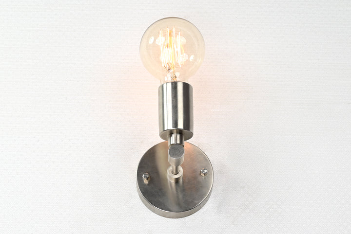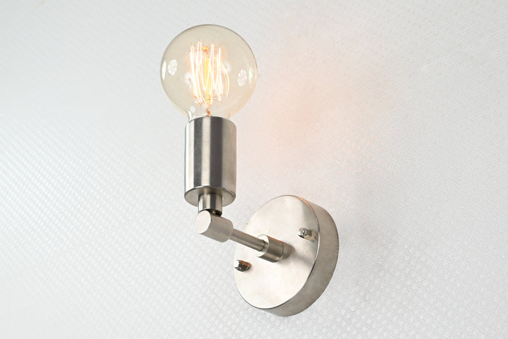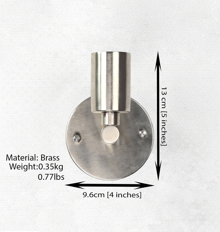 This wall sconce is a modern minimalist lighting solution crafted from solid brass with a satin nickel finish. Compact yet eye-catching, it measures 13 cm (5 inches) in height and 9.6 cm (4 inches) in width, weighing just 0.35 kg (0.77 lbs). Designed for single-bulb installation, it adds subtle charm to any interior without overwhelming the space. The fixture’s streamlined form makes it ideal for use in narrow hallways, bedside walls, or small alcoves. Built for durability and timeless appeal, it’s a versatile choice for both residential and commercial interiors seeking refined, functional lighting.