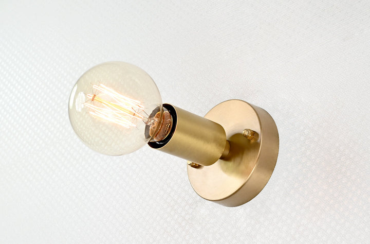 Sleek, minimal, and rich in tone — this compact wall sconce is a masterclass in modern design. Handcrafted from solid brass and finished in a luxurious satin gold, the fixture sits at a neat 4 inches in height, width, and depth, making it an effortlessly versatile lighting solution. A clean cylindrical holder extends smoothly from a round base, offering a crisp silhouette that fits beautifully in modern, transitional, and even art deco spaces. Its warm metallic finish elevates interiors with understated sophistication, while its minimalist structure ensures it doesn’t overwhelm small or narrow spaces. When fitted with a vintage filament bulb, the sconce casts a soft, ambient glow — perfect for mood lighting in entryways, powder rooms, or bedside nooks. Whether used solo or in a repeating line-up, it speaks the language of quiet elegance and geometric harmony.