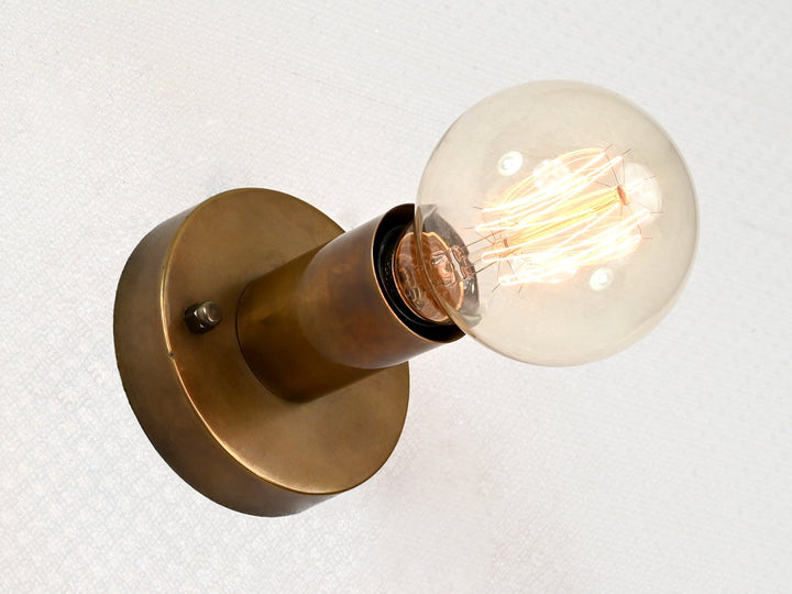 Industrial Minimalist Brass Wall Sconce | Compact Cylindrical Spotlight | Customizable Fixture - 32558