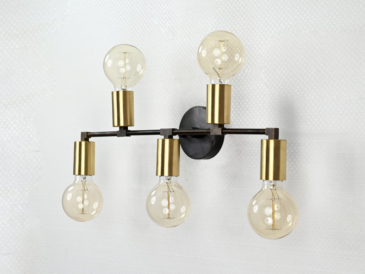 Industrial Modern Brass Wall Sconce | 5-Light Customizable Linear Fixture for Home Interiors - 32562