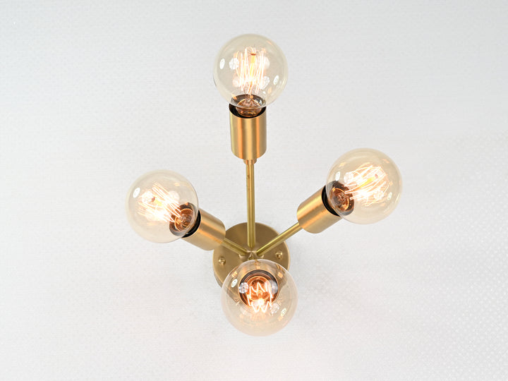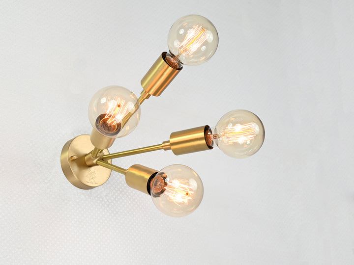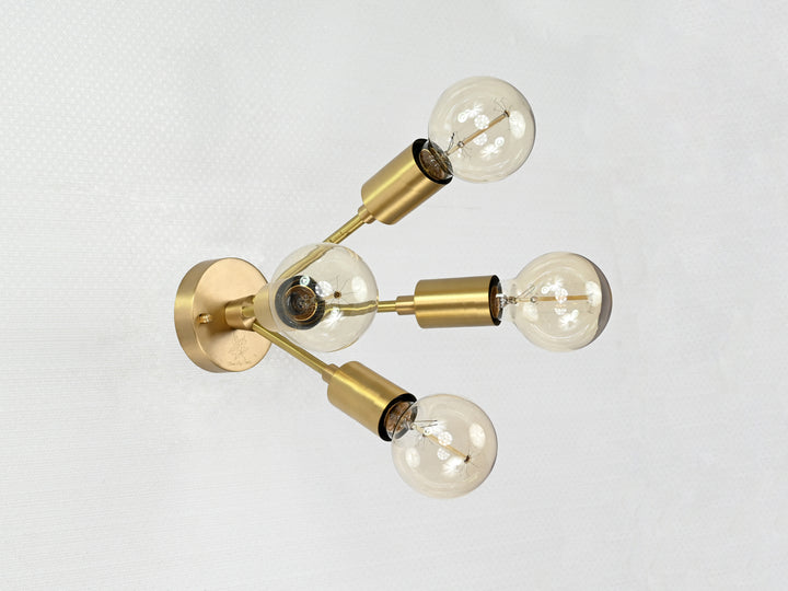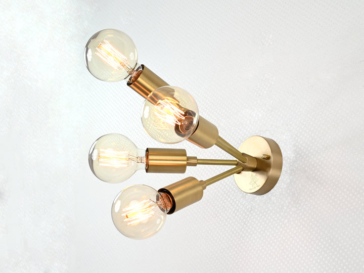 Mid-Century Modern Brass Wall Sconce | Four Arm Customizable Fixture for Accent & Ambient Lighting - 32564