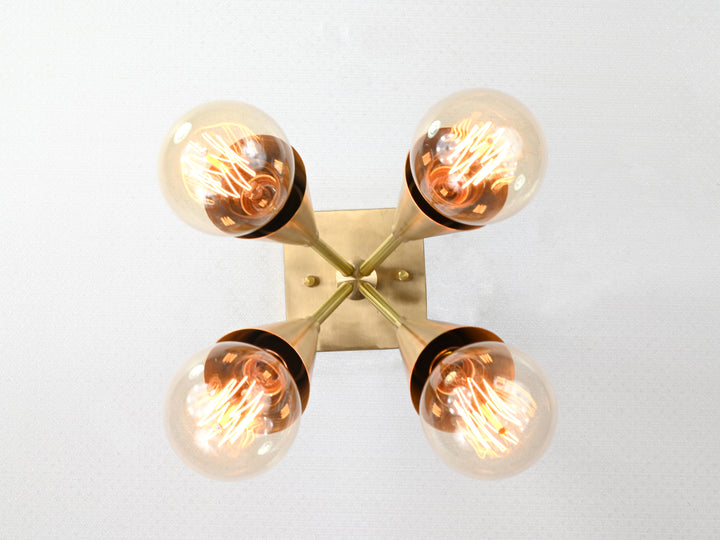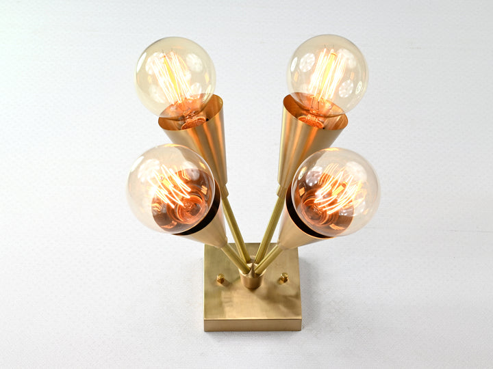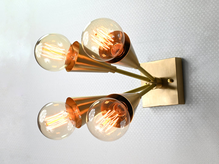 Mid-Century Modern 4-Light Cone Brass Wall Sconce | Customizable Adjustable Handcrafted Fixture - 32567