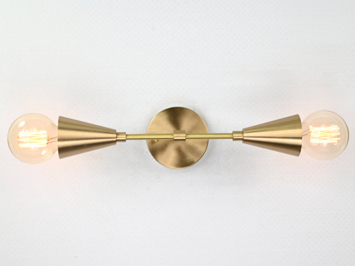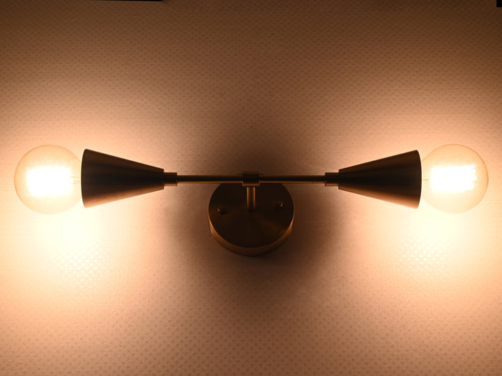 Mid-Century Modern Double Cone Wall Sconce | Customizable Brass Light Fixture for Hall or Vanity - 32571