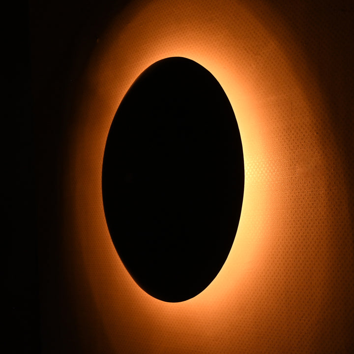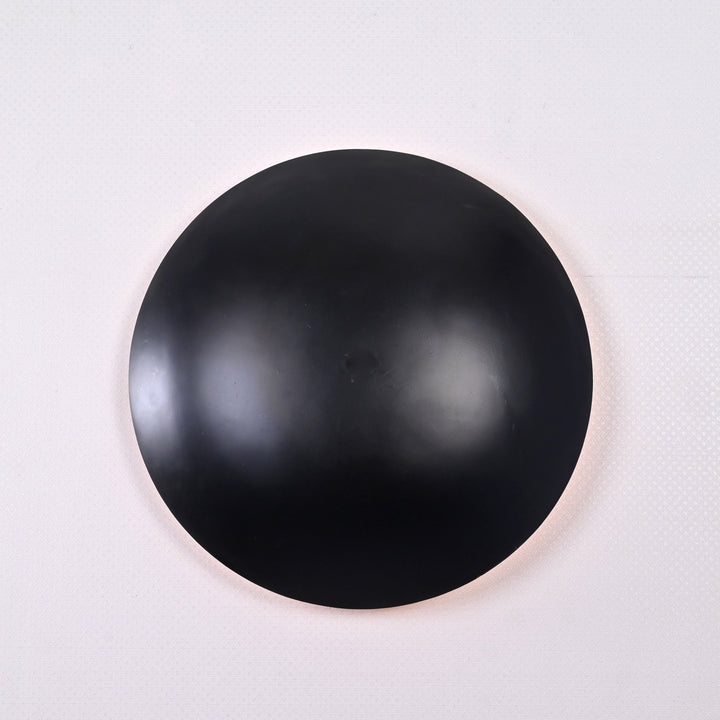 Imbued with sculptural elegance and minimalist ethos, this large-scale wall sconce commands attention with its commanding 18-inch diameter. Meticulously handcrafted from brass and finished in a smooth matte black, the piece combines bold geometry with subtle sophistication. The domed silhouette gently bows outward, producing a soft halo of backlit illumination that enhances mood and spatial drama. Perfectly poised between function and artistry, this light fixture transcends traditional wall lighting. Whether displayed as a singular focal point or grouped in an asymmetrical trio, it elevates both modern and eclectic interiors with its refined yet audacious aesthetic. Its sleek presence and ambient glow make it an ideal choice for gallery-style settings, hospitality projects, or chic residential walls.