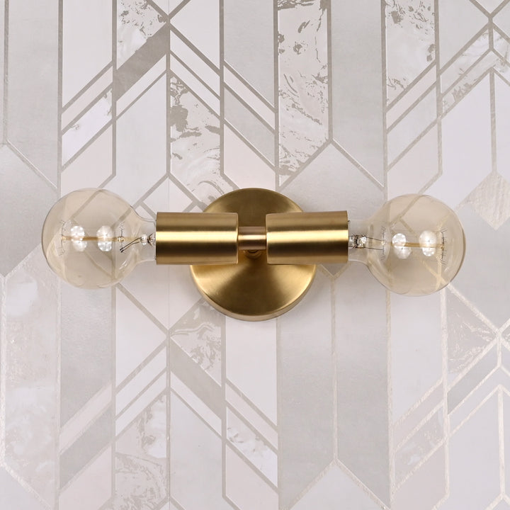 Mid-Century Modern Brass Tube Wall Sconce | Customizable Dual-Bulb Light Fixture For Bathroom Vanity - 32615