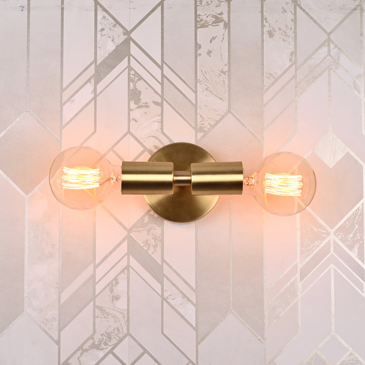 Striking a perfect balance between vintage charm and industrial edge, this dual-light wall sconce features a cylindrical brass body that anchors two exposed bulbs. Measuring 6 inches in width and 4 inches in height, its compact form packs a visual punch without overwhelming the space. The brushed brass finish lends it a rich, warm glow that complements both traditional and contemporary interiors. The symmetrical double-socket design allows light to emit from both ends, creating a balanced, radiant ambiance that’s ideal for hallways, vanities, or modern loft-style settings.
