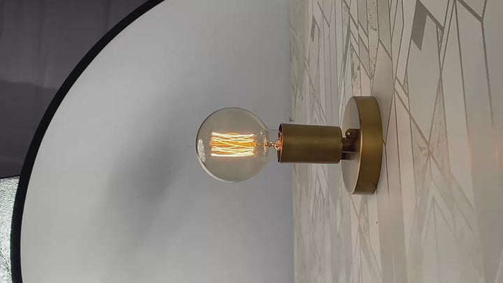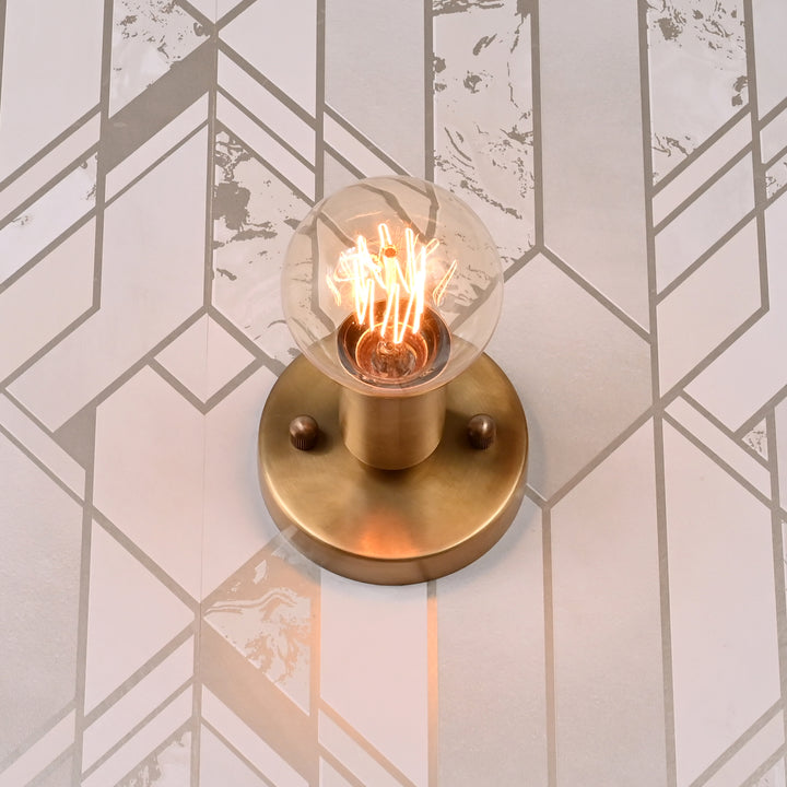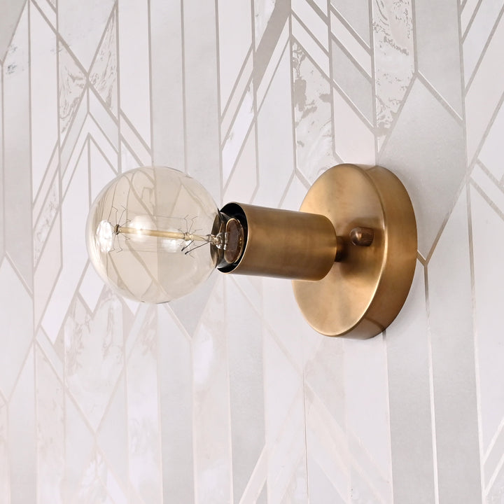 With a design rooted in simplicity, this compact wall sconce offers a clean and elegant lighting solution for modern and minimalist interiors. Measuring just 4 inches in height, width, and depth, its cube-like profile gives off a distinctly contemporary feel. Crafted from brass with a brushed finish, the fixture exudes understated luxury while remaining unintrusive. The cylindrical socket extends directly from a flat round backplate, offering direct illumination with an exposed filament bulb that adds a touch of vintage charm. Ideal for accent lighting, this sconce is perfect for tight spaces like corridors, reading nooks, or as a sophisticated bedside lighting option.