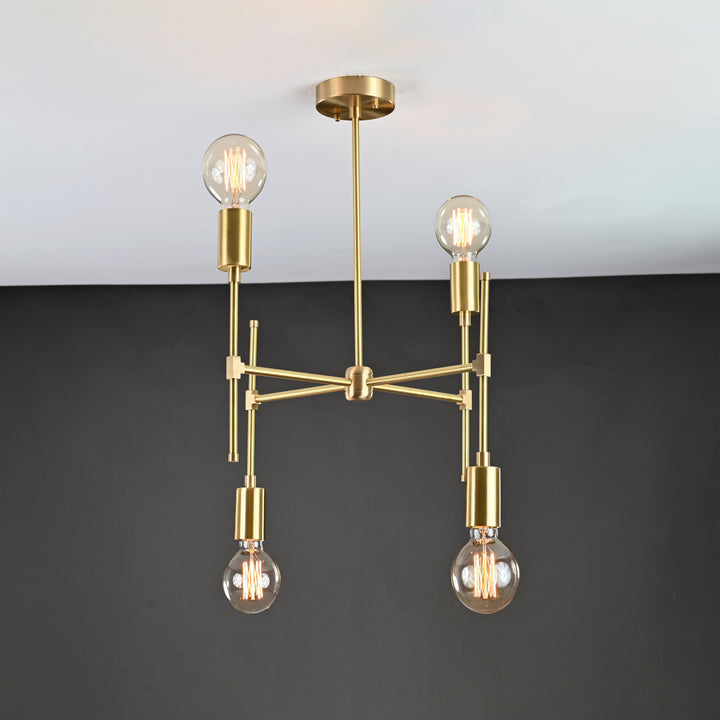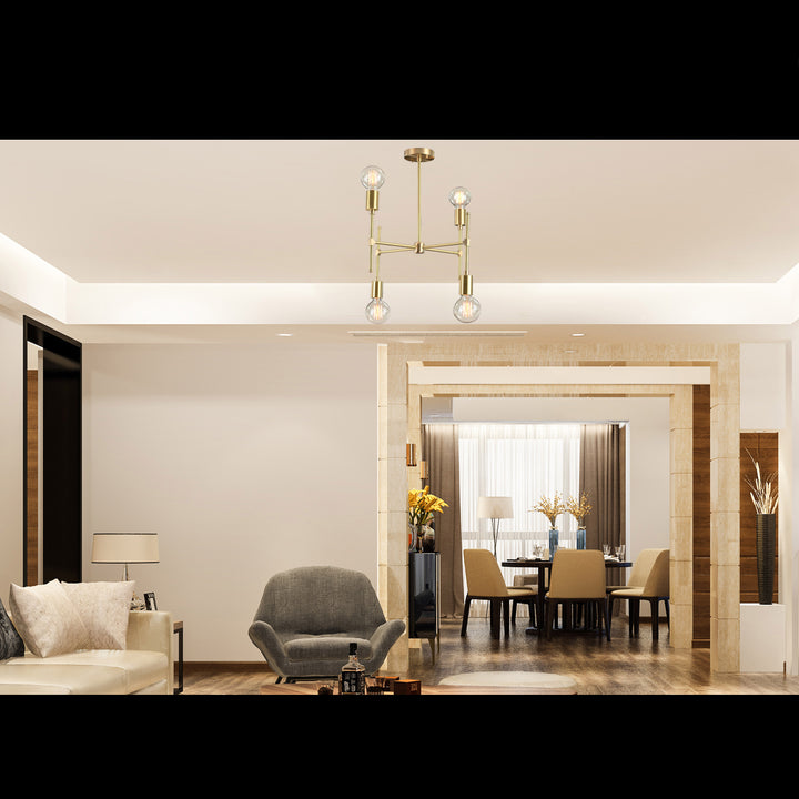 This stunning ceiling light fixture features a sleek and modern design crafted from high-quality brass, offering both durability and timeless elegance. The fixture is designed with four evenly spaced lights that extend horizontally and vertically, creating a symmetrical and balanced appearance. With dimensions of 45.3 cm (17.83 inches) in width and a total height of 53.5 cm (21.06 inches), it is a perfect statement piece for dining rooms, living areas, or entryways. The minimalist structure and clean lines add a sophisticated touch, making it ideal for contemporary and mid-century interiors.
