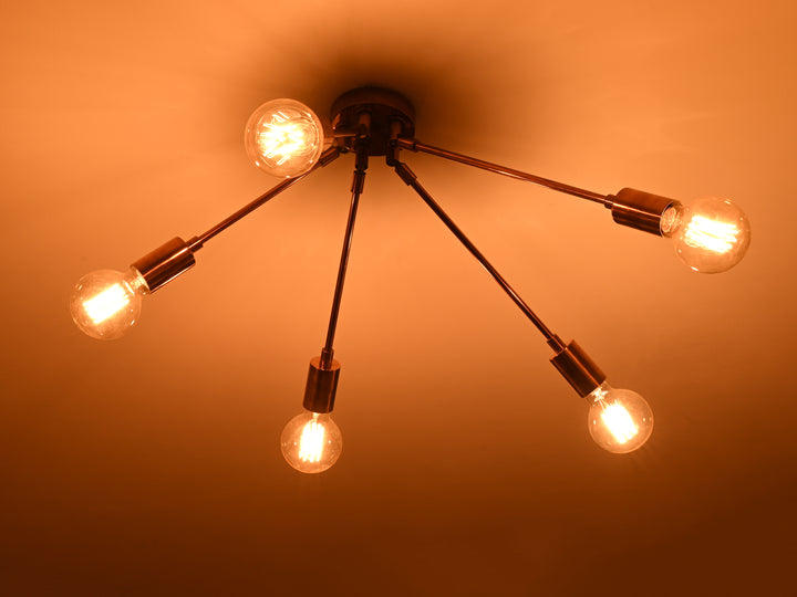 Elevate your space with this contemporary brass ceiling light, designed to blend industrial charm with modern elegance. Featuring six uniquely angled arms extending from a central hub, this eye-catching fixture adds artistic flair and balanced illumination to any room. With a width of 63 cm (24.8 inches) and a drop height of 45.6 cm (17.9 inches), it’s perfectly sized to make a statement in dining rooms, living areas, or stylish entryways. The unidentical arm arrangement creates a dynamic, sculptural silhouette—ideal for those looking to infuse their interiors with character and sophistication.