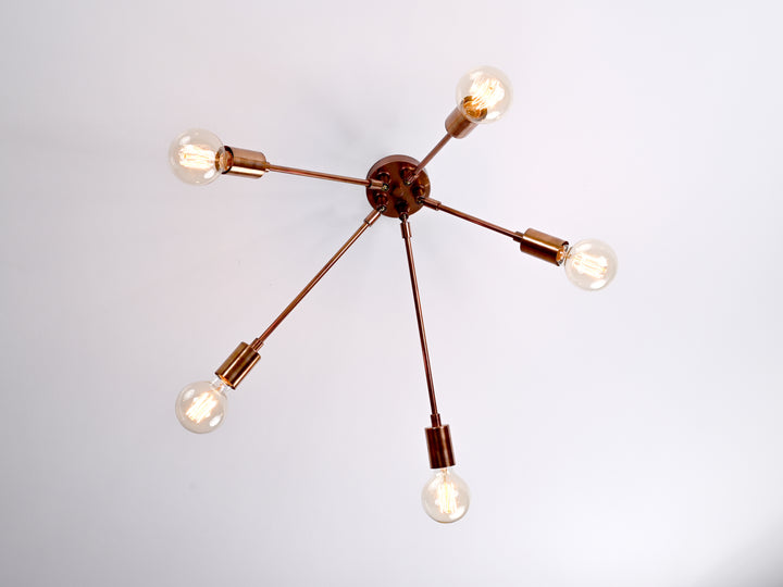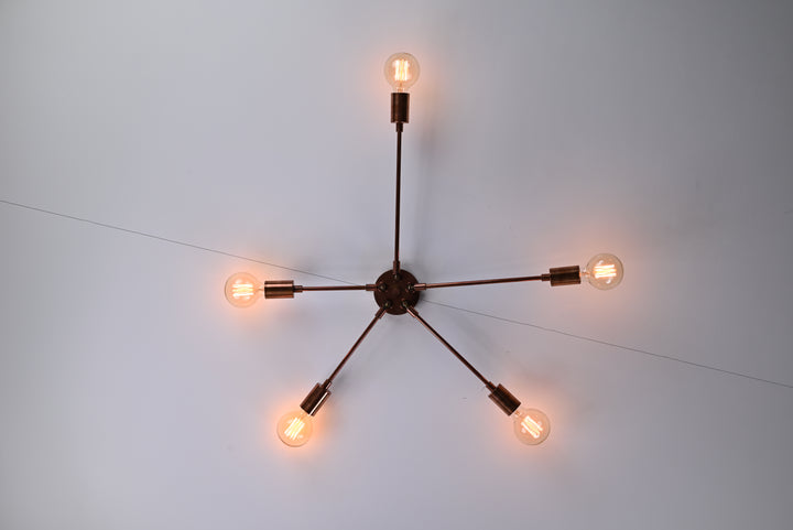 Modern 6-Light Copper Chandelier – Sputnik Style Ceiling Fixture with Globe Bulbs - 32210