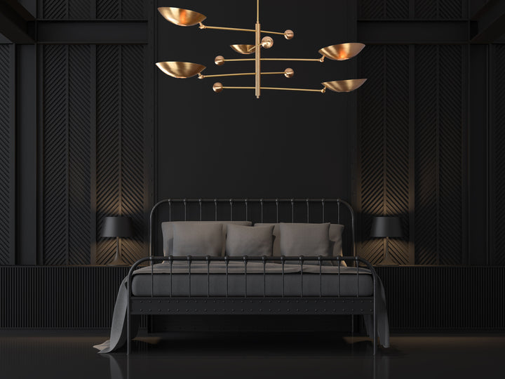Five-Light Sculptural Brass Chandelier – Handcrafted Mid-Century Modern Luxury Ceiling Light | Custom Size & Finish - 32307