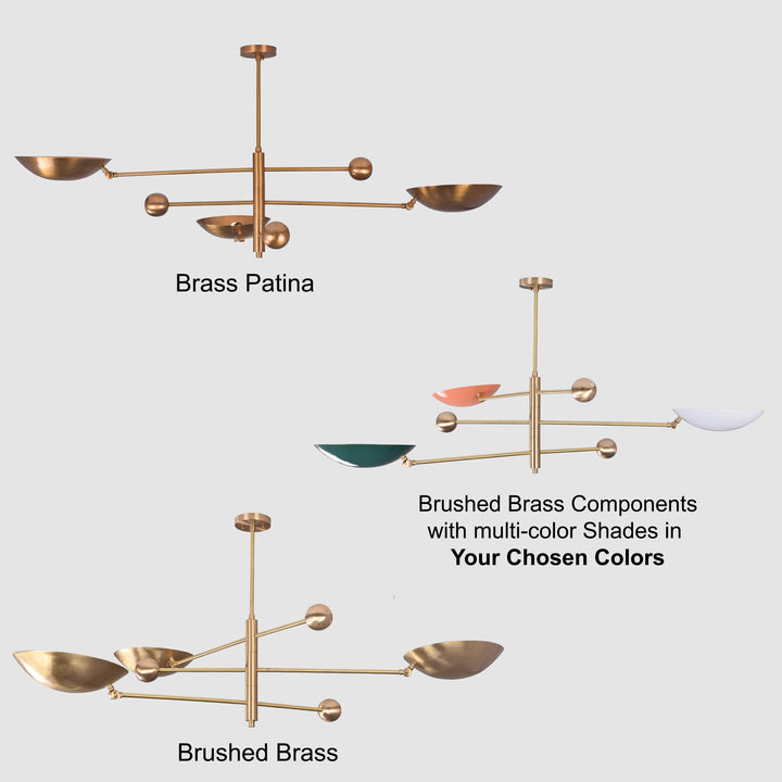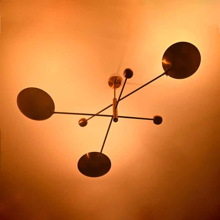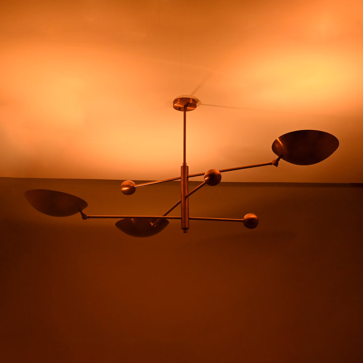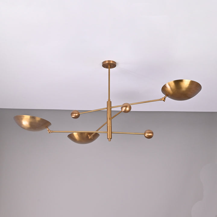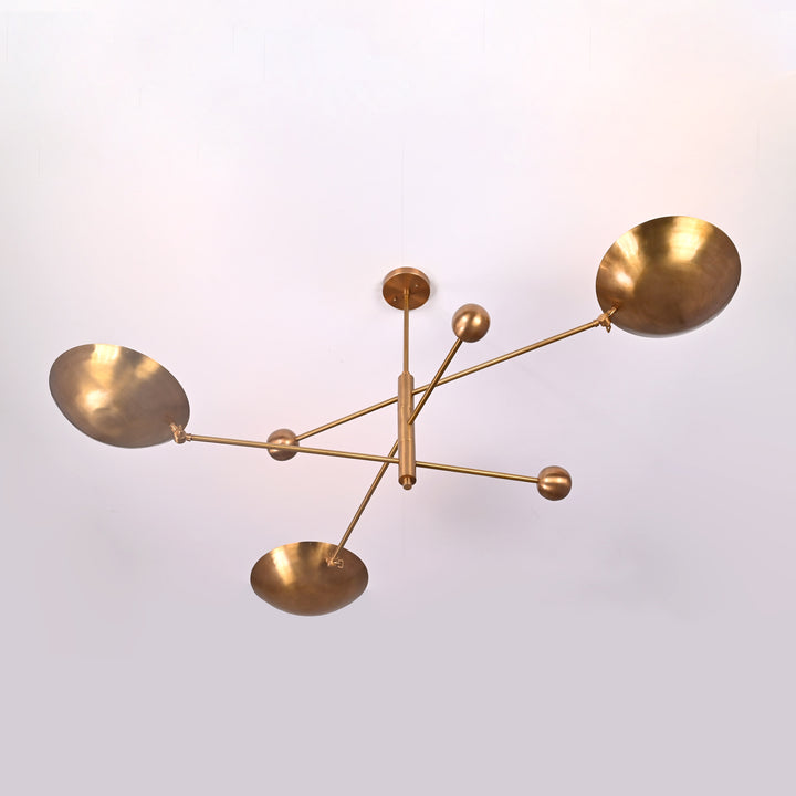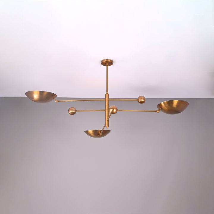 Modern Brass Chandelier | Custom 3-Light Ceiling Fixture | Mid-Century Minimalist Light | Uplighting Pendant | Handmade to Order - 32351