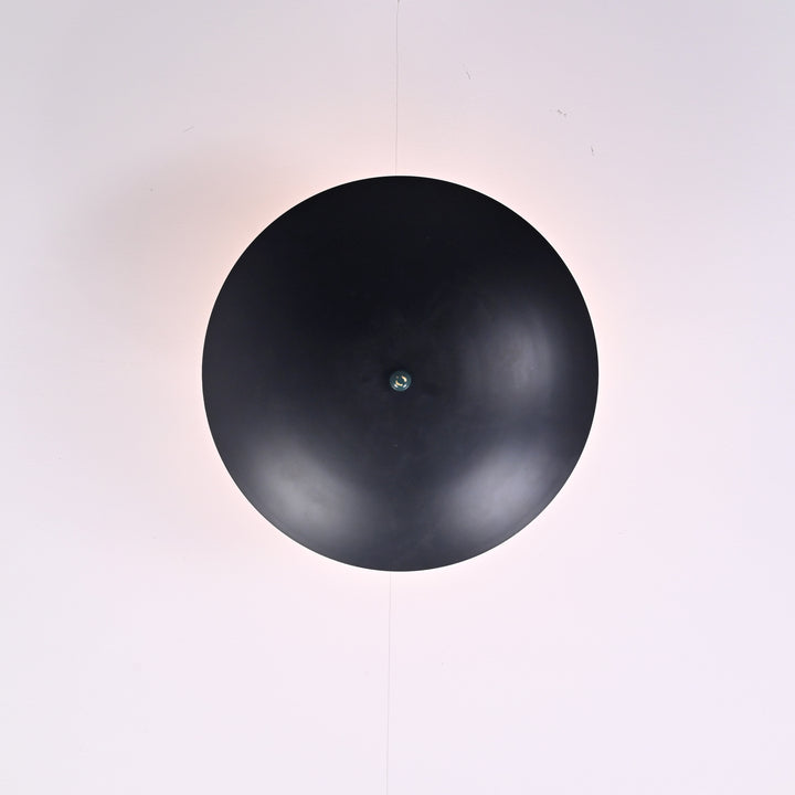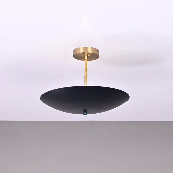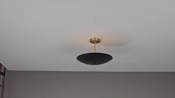 This ceiling-mounted fixture features an elegant, upward-facing dish design that creates a soft and ambient lighting effect. Measuring 14 inches in diameter and extending 11 inches from the ceiling, it houses three internal bulbs that cast a warm, diffused glow across the ceiling and surrounding space. The design promotes an uplifting lighting style, ideal for cozy interiors or mood lighting. When lit in a dark room, it produces a dramatic halo effect that enhances the atmosphere with subtle radiance and depth. The light is evenly distributed, avoiding harsh glare while still providing sufficient illumination for the room. Its minimalist structure and gentle curvature give it a refined, modern presence.