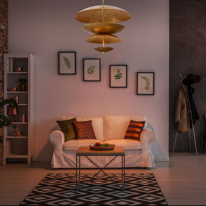 * Sculptural disc-style layered chandelier