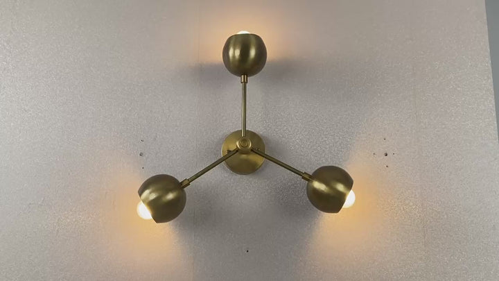 Brass 3-Light Ceiling Flush Mount Chandelier with Dome Shades – Modern Handmade Wall & Ceiling Light by Brass Leaf Studio 32636