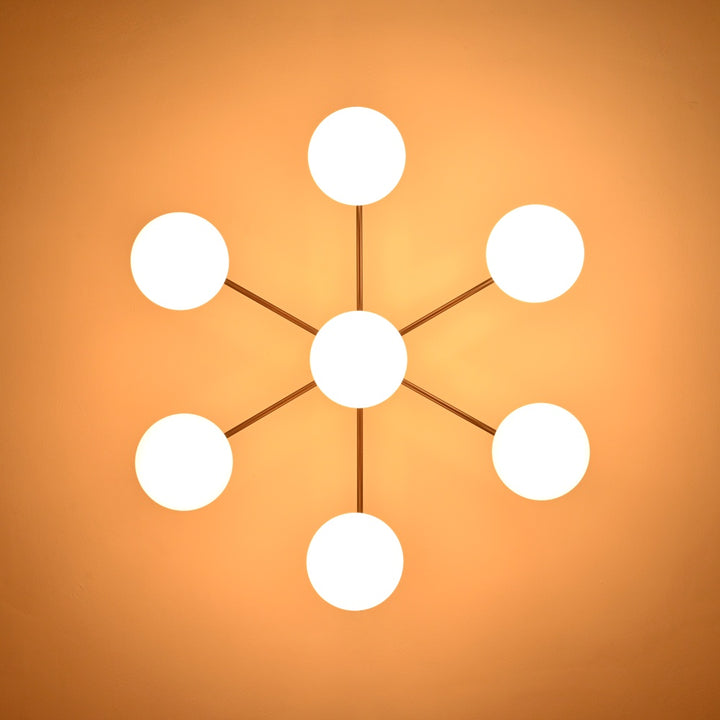 Modern Brass Globe Chandelier – Customizable Flush Mount Ceiling Light | Mid-Century Fixture | Multiple Finish Options | 6-Light - 32467