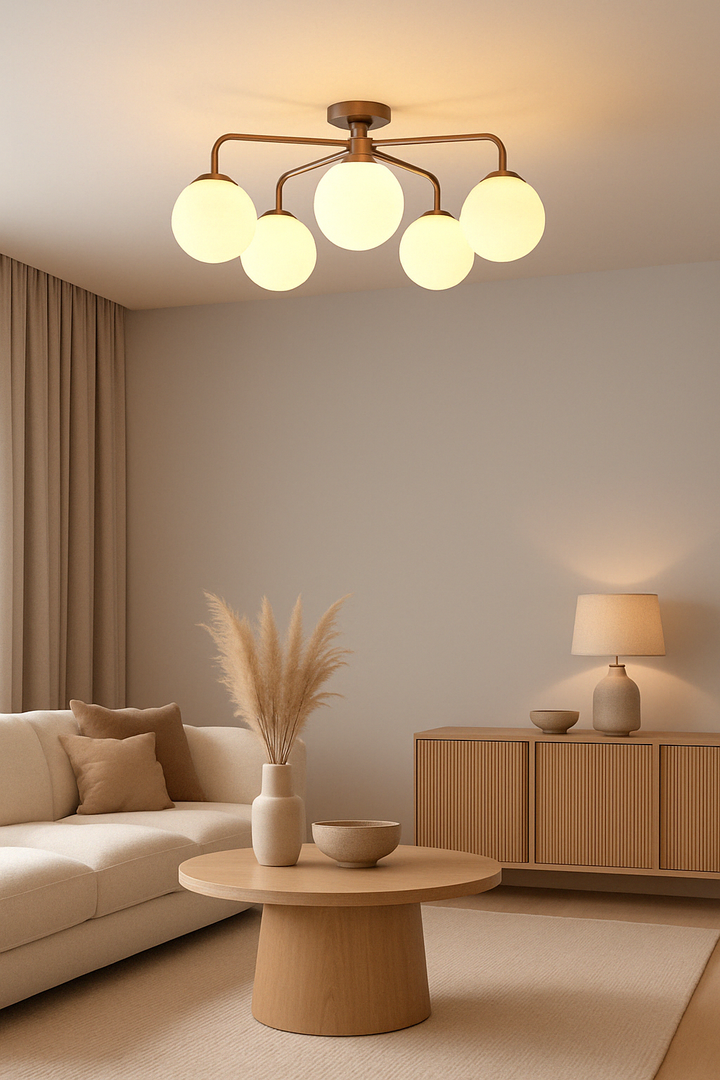 💡 Glass Globe Chandelier – Modern Flush Mount