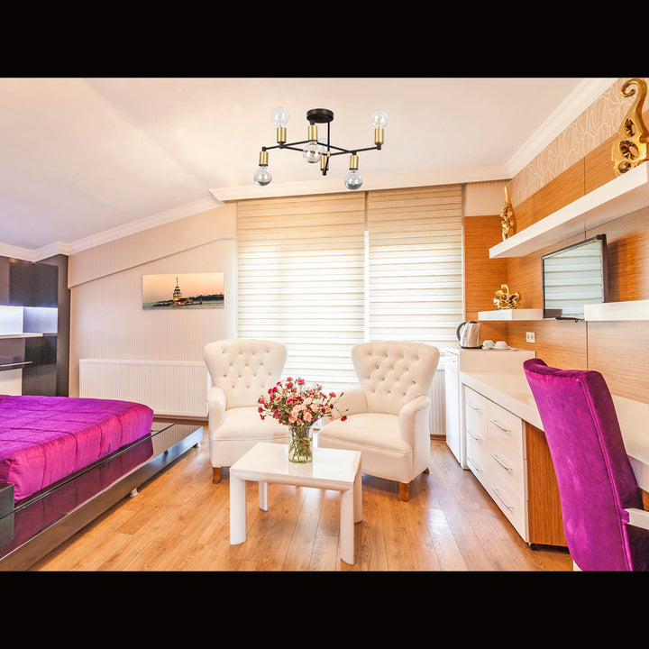 Modern 6-Light Black & Brass Chandelier – Industrial Ceiling Fixture with Crossbar Design - 32208