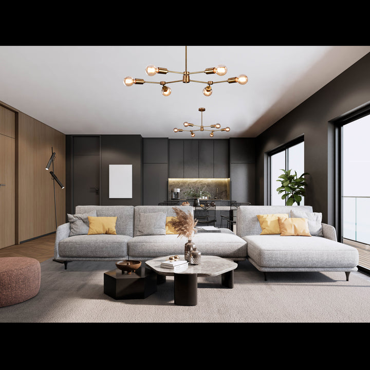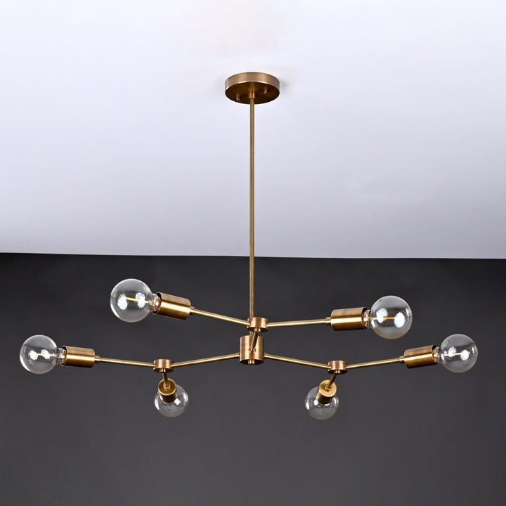 Modern 8-Light Brass Chandelier – Sculptural Ceiling Fixture with Industrial Globe Bulbs - 32214