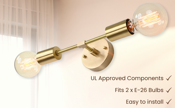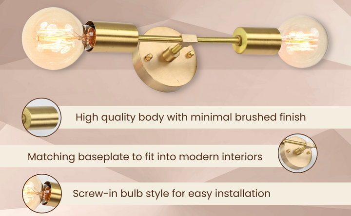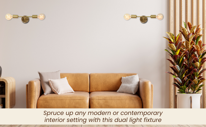 Expertly crafted from high-quality brass, this wall sconce exemplifies refined minimalism and understated elegance. With a compact yet impactful profile measuring 30 cm (12 inches) in width and 9.6 cm (4 inches) in height, and weighing just 0.41 kg (0.90 lbs), it is ideal for adding subtle sophistication without overwhelming a space. The sleek cylindrical sockets sit at either end of a slender horizontal rod, radiating balance and symmetry. This fixture is perfect for enhancing warm, ambient lighting with exposed filament bulbs, creating a cozy yet modern vibe. It’s particularly well-suited for use in hallways, powder rooms, reading nooks, or flanking a mirror in a vanity setting. The brushed brass finish imparts a gentle glow, making it a versatile choice for both contemporary and transitional interiors. Pair it with soft matte textures, stone accents, or natural woods to complete a curated and intentional design scheme.