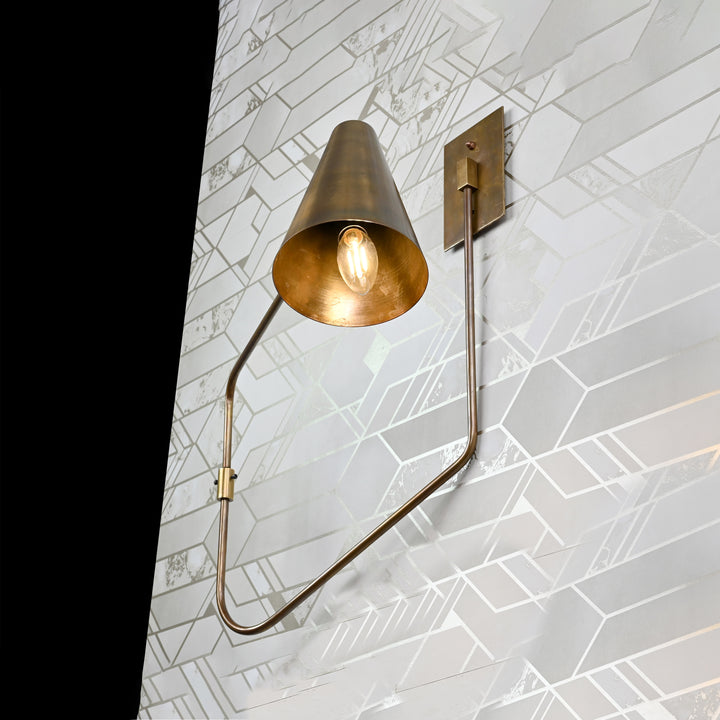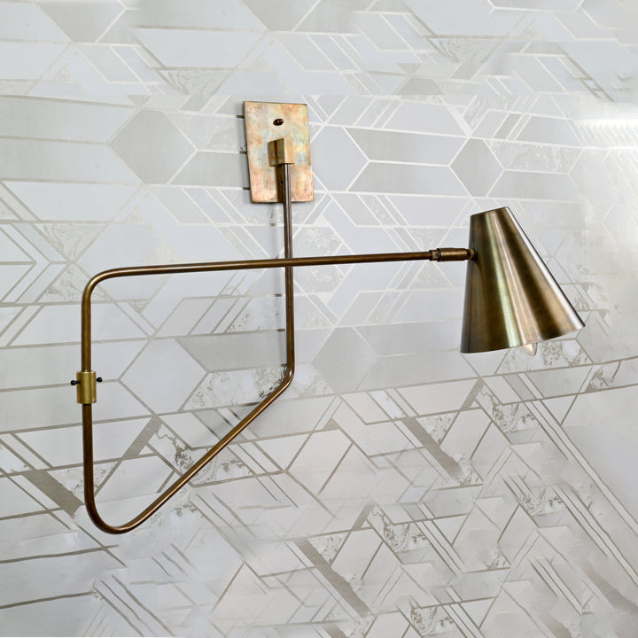 A harmonious fusion of form and function, this elongated brass wall sconce is a true testament to minimalist sophistication and utility. Handcrafted from solid brass with a warm, brushed patina, the sconce features an extended geometric armature that stretches an impressive 36 inches from wall to shade. Its commanding presence is tempered by sleek, precise lines and an industrial sensibility. Designed with both reach and articulation in mind, the adjustable arm offers dynamic lighting control—perfect for bedside reading, illuminating artwork, or adding architectural interest to modern interiors. The conical shade evokes mid-century elegance, while the sculptural tubing makes this piece as much a design feature as it is a practical lighting solution.